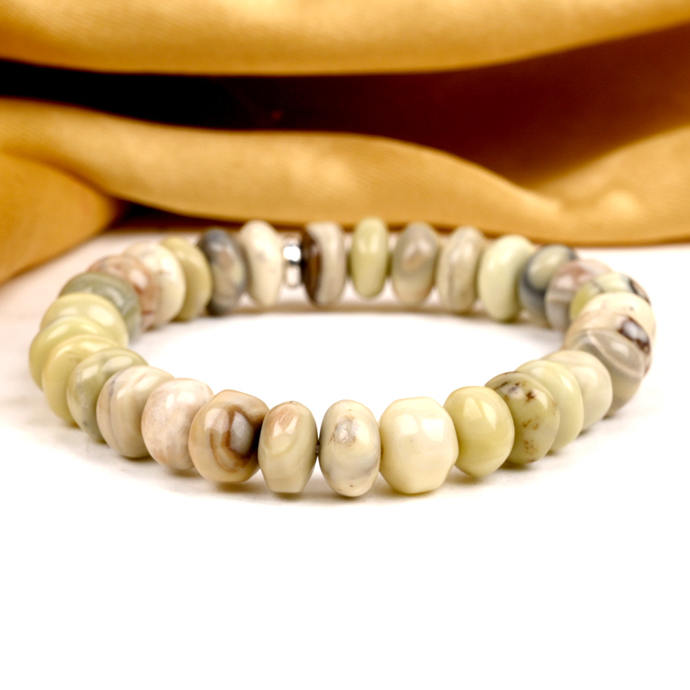This Butter Jade Bracelet features smooth elliptical-shaped beads in soft creamy yellow and light earthy tones. Each bead shows natural variations in shade and pattern, reflecting the unique character of the stone. The bracelet is strung securely for comfortable daily wear.
