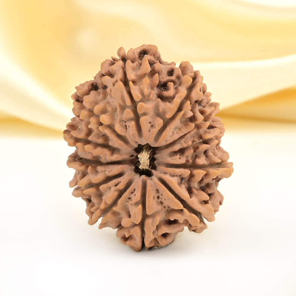 The 12 Mukhi Rudraksha embodies the energy of the Surya Deva and empowers the wearer with qualities of the Sun like authority, brilliance, and influence. It provides relief from stress and anger rooted in feelings of victimization, worries, suspicion, fear of the future, dependency, and low self-respect. The wearer gains personal power, drive, vigor, excellent health, and a commanding presence. This Rudraksha fosters leadership qualities, visionary abilities, and the motivation to take decisive action leading in achievements that bring name, fame, success, and recognition. Additionally, it supports overall health and aids in better digestion.