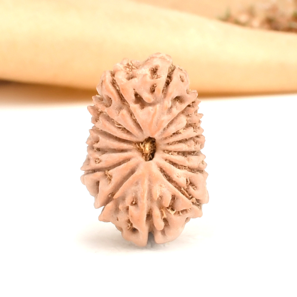 The 14 Mukhi Rudraksha is known as Deva Mani, the most precious divine gem. It embodies the mighty Hanuman and imparts the wearer with unwavering determination, divine insight, and the bravery to conquer any challenge. The wearer traverses the path of righteousness, achieving excellence, victory, and success. Hanuman, also known as Rudravtar, is a devoted disciple of Bhagwan Rama and imbues worshippers with His qualities of sincere devotion and unwavering loyalty towards dharma. Those attuned with this Rudraksha, and thus Lord Hanuman, are guided towards perfect mastery of the senses and virtues such as endurance, fearlessness, and courage. Wearing this Rudraksha helps alleviate uncontrolled anger and fear, bone pains, and blood-related disorders.