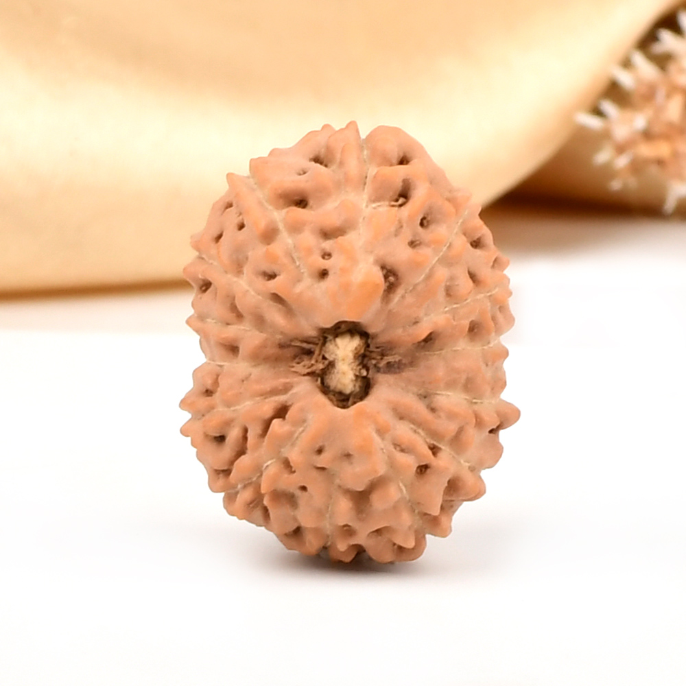 The 14 Mukhi Rudraksha is known as Deva Mani, the most precious divine gem. It embodies the mighty Hanuman and imparts the wearer with unwavering determination, divine insight, and the bravery to conquer any challenge. The wearer traverses the path of righteousness, achieving excellence, victory, and success. Hanuman, also known as Rudravtar, is a devoted disciple of Bhagwan Rama and imbues worshippers with His qualities of sincere devotion and unwavering loyalty towards dharma. Those attuned with this Rudraksha, and thus Lord Hanuman, are guided towards perfect mastery of the senses and virtues such as endurance, fearlessness, and courage. Wearing this Rudraksha helps alleviate uncontrolled anger and fear, bone pains, and blood-related disorders.