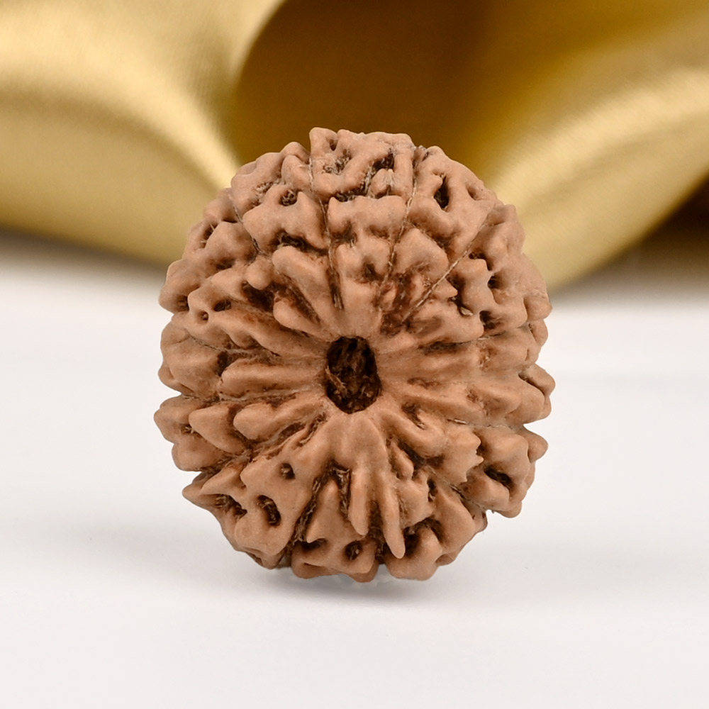 The 14 Mukhi Rudraksha is known as Deva Mani, the most precious divine gem. It embodies the mighty Hanuman and imparts the wearer with unwavering determination, divine insight, and the bravery to conquer any challenge. The wearer traverses the path of righteousness, achieving excellence, victory, and success. Hanuman, also known as Rudravtar, is a devoted disciple of Bhagwan Rama and imbues worshippers with His qualities of sincere devotion and unwavering loyalty towards dharma. Those attuned with this Rudraksha, and thus Lord Hanuman, are guided towards perfect mastery of the senses and virtues such as endurance, fearlessness, and courage. Wearing this Rudraksha helps alleviate uncontrolled anger and fear, bone pains, and blood-related disorders.