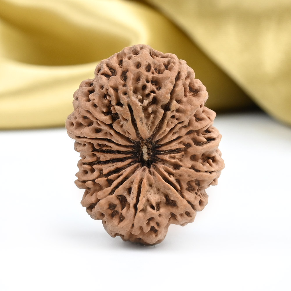 The 14 Mukhi Rudraksha is known as Deva Mani, the most precious divine gem. It embodies the mighty Hanuman and imparts the wearer with unwavering determination, divine insight, and the bravery to conquer any challenge. The wearer traverses the path of righteousness, achieving excellence, victory, and success. Hanuman, also known as Rudravtar, is a devoted disciple of Bhagwan Rama and imbues worshippers with His qualities of sincere devotion and unwavering loyalty towards dharma. Those attuned with this Rudraksha, and thus Lord Hanuman, are guided towards perfect mastery of the senses and virtues such as endurance, fearlessness, and courage. Wearing this Rudraksha helps alleviate uncontrolled anger and fear, bone pains, and blood-related disorders.