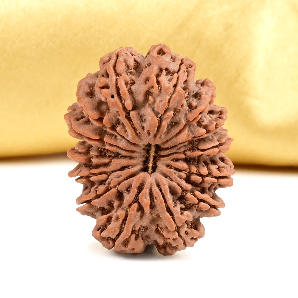 The 14 Mukhi Rudraksha is known as Deva Mani, the most precious divine gem. It embodies the mighty Hanuman and imparts the wearer with unwavering determination, divine insight, and the bravery to conquer any challenge. The wearer traverses the path of righteousness, achieving excellence, victory, and success. Hanuman, also known as Rudravtar, is a devoted disciple of Bhagwan Rama and imbues worshippers with His qualities of sincere devotion and unwavering loyalty towards dharma. Those attuned with this Rudraksha, and thus Lord Hanuman, are guided towards perfect mastery of the senses and virtues such as endurance, fearlessness, and courage. Wearing this Rudraksha helps alleviate uncontrolled anger and fear, bone pains, and blood-related disorders.