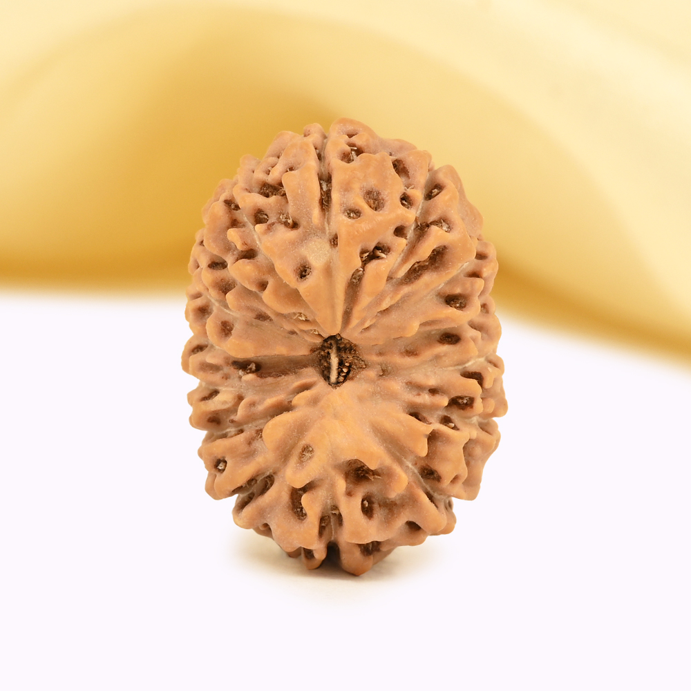 The 15 Mukhi Rudraksha embodies Pashupatinath, a five-faced form of Shiva symbolizing the divine roles of creation, preservation, destruction, illusion, and liberation. This Rudraksha opens the wearer to trust and fulfills heartfelt desires. It frees one from expectations from outside people and situations and instills the ability to forgive, forego, and detach. It heals emotional wounds, balances the heart chakra, and opens the path to higher consciousness. By awakening unconditional love and trust, it strengthens relationships. According to the Katyayani Tantra, wearing the 15 Mukhi Rudraksha helps transcend worldly attachments, enhancing focus on knowledge, self-awareness, and spiritual growth. It also supports heart health, alleviates recurring fevers, and relieves allergies.