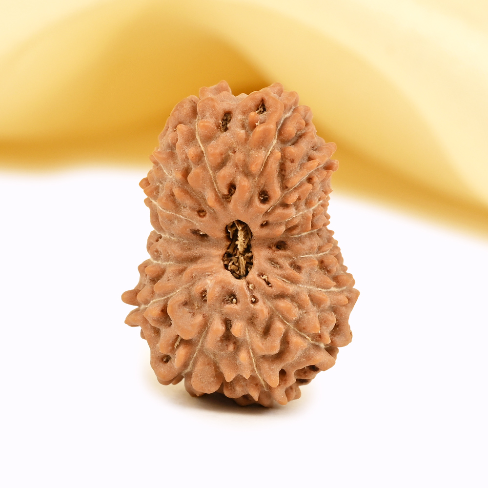 The 15 Mukhi Rudraksha embodies Pashupatinath, a five-faced form of Shiva symbolizing the divine roles of creation, preservation, destruction, illusion, and liberation. This Rudraksha opens the wearer to trust and fulfills heartfelt desires. It frees one from expectations from outside people and situations and instills the ability to forgive, forego, and detach. It heals emotional wounds, balances the heart chakra, and opens the path to higher consciousness. By awakening unconditional love and trust, it strengthens relationships. According to the Katyayani Tantra, wearing the 15 Mukhi Rudraksha helps transcend worldly attachments, enhancing focus on knowledge, self-awareness, and spiritual growth. It also supports heart health, alleviates recurring fevers, and relieves allergies.