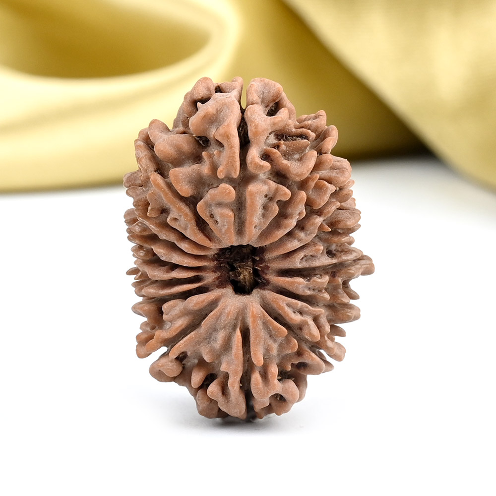 The 15 Mukhi Rudraksha embodies Pashupatinath, a five-faced form of Shiva symbolizing the divine roles of creation, preservation, destruction, illusion, and liberation. This Rudraksha opens the wearer to trust and fulfills heartfelt desires. It frees one from expectations from outside people and situations and instills the ability to forgive, forego, and detach. It heals emotional wounds, balances the heart chakra, and opens the path to higher consciousness. By awakening unconditional love and trust, it strengthens relationships. According to the Katyayani Tantra, wearing the 15 Mukhi Rudraksha helps transcend worldly attachments, enhancing focus on knowledge, self-awareness, and spiritual growth. It also supports heart health, alleviates recurring fevers, and relieves allergies.