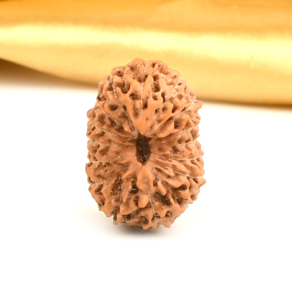 The 16 Mukhi Rudraksha embodies Mahamrityunjaya Shiva, who represents the eternal aspect of the self, transcending the cycles of life and death and symbolizing immortality and transcendence. The wearer is blessed with good health, protection, mental fortitude, and resilience, and is guided towards realizing their full potential. It eliminates fears, phobias, depression, and negative thinking, while aiding in resolving unlawful disputes and court cases in one’s favor. It also gives the wearer the strength to let go of what no longer serves the present moment, alleviating the burden of accumulated stress from clinging. According to the Katyayani Tantra, this divine Rudraksha safeguards against various diseases, including chronic and fatal ones. The Mahamrityunjaya mantra is recited during times of illness to protect against untimely death. The healing properties of this Rudraksha support curing low back pain, kidney, bladder, and large intestine ailments.