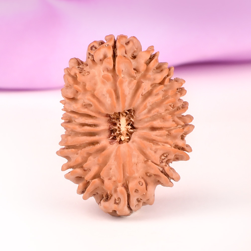 The 17 Mukhi Rudraksha symbolizes Katyayani Devi, the sixth form of Durga. Worshipping this goddess grants the wearer the four fruits of life: Dharma, Artha, Kama, and Moksha. This Rudraksha promotes transcendence over all boundaries, guiding the wearer to embrace non-duality in every aspect of life, including thoughts, actions, and spiritual awareness. On a psychic level, it enhances superior intuition, clairvoyance, telepathic abilities, self-control, intellectual identification, and creative intelligence. It is especially beneficial for project leaders, businessmen, political leaders, and anyone desiring career growth. According to the Katyayani Tantra, this Rudraksha blesses the wearer with immense power for wealth creation and divine magnetism. It helps fulfill desires related to finding a life partner, having progeny, and attracting desired outcomes through the power of command. It also clears illusions and ignorance, helping the wearer see reality and transform it with innate intelligence.