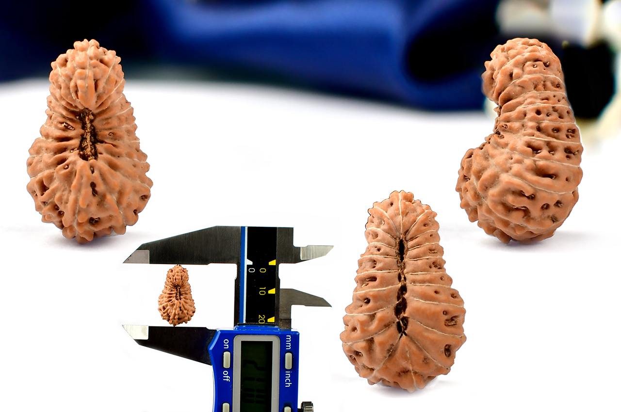 20 Mukhi Rudraksha embodies Bhagawan Brahma, the Creator of the Universe. It bestows blessings for the acquisition of divine knowledge in various realms such as creation, sciences, arts, and music. Katyayani Purana mentions that the wearer transforms into a creator, possessing vast knowledge and intellect and is endowed with great mental power to bring intentions to reality. This Rudraksha is worn by those aspiring to manifest projects for the betterment of humanity. The 20 Mukhi Rudraksha grants the power of creation, enabling the manifestation of projects that benefit humanity and bring prosperity and wealth. Therapeutically, wearing this Rudraksha alleviates anxiety.