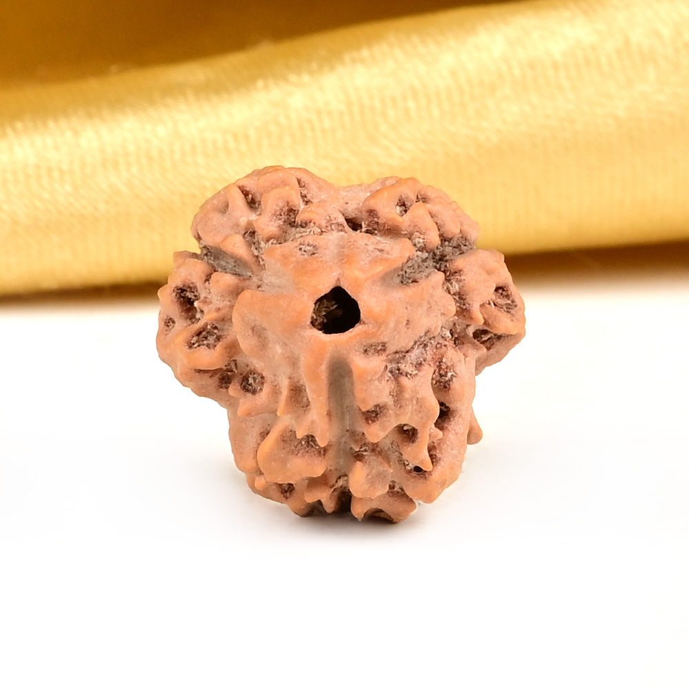The 3 Mukhi Rudraksha represents Agni, the deity of fire. This Rudraksha has the ability to burn past karma, purify consciousness, and liberate individuals from the bondage of their past. This sets the stage for achieving success through virtuous actions in one's current existence. The 3 Mukhi Rudraksha has the power to purify one's past impressions of anger, hurt, shame, and stress, connecting them to their true and pure self, just like fire burns everything yet remains pure.