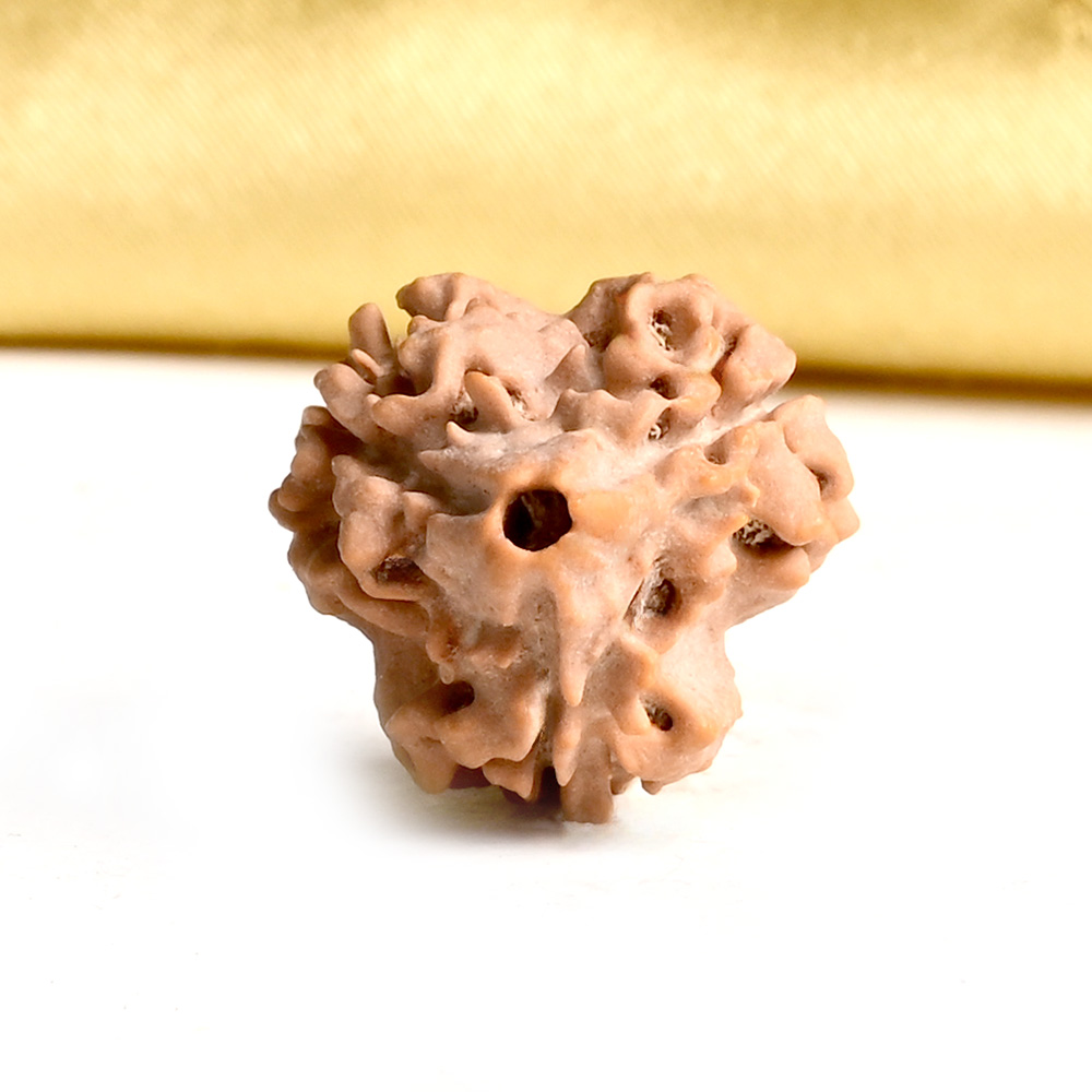 The 3 Mukhi Rudraksha represents Agni, the deity of fire. This Rudraksha has the ability to burn past karma, purify consciousness, and liberate individuals from the bondage of their past. This sets the stage for achieving success through virtuous actions in one's current existence. The 3 Mukhi Rudraksha has the power to purify one's past impressions of anger, hurt, shame, and stress, connecting them to their true and pure self, just like fire burns everything yet remains pure.