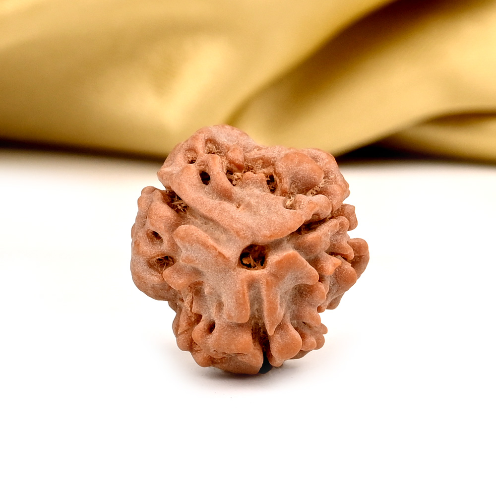 The 3 Mukhi Rudraksha represents Agni, the deity of fire. This Rudraksha has the ability to burn past karma, purify consciousness, and liberate individuals from the bondage of their past. This sets the stage for achieving success through virtuous actions in one's current existence. The 3 Mukhi Rudraksha has the power to purify one's past impressions of anger, hurt, shame, and stress, connecting them to their true and pure self, just like fire burns everything yet remains pure.