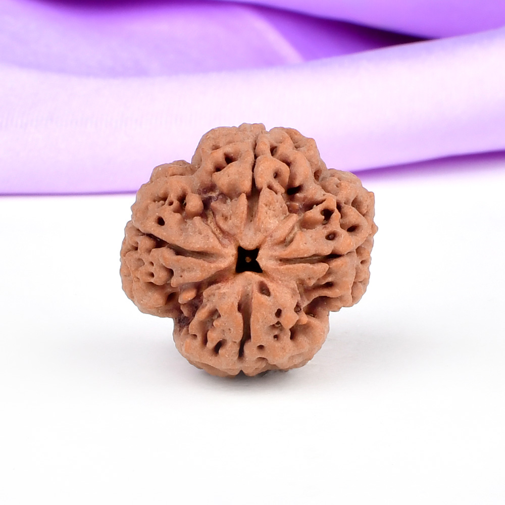 The 4 Mukhi Rudraksha embodies Brihaspati, also known as the Deva Guru or teacher of the Gods. Brihaspati is revered as the master of sacred wisdom, knowledge, hymns, and rituals. His name in Sanskrit translates to "Bhagwan of Sacred Speech." The 4 Mukhi Rudraksha helps bring out the wearer’s confidence and expressiveness, allowing them to overcome shyness and timidity. It brings melodious speech, supports creativity, clear communication, and a positive outlook, guiding the wearer towards personal growth and transformation in many areas of life.