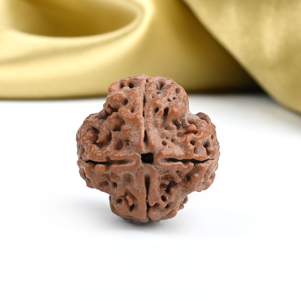 The 4 Mukhi Rudraksha embodies Brihaspati, also known as the Deva Guru or teacher of the Gods. Brihaspati is revered as the master of sacred wisdom, knowledge, hymns, and rituals. His name in Sanskrit translates to "Bhagwan of Sacred Speech." The 4 Mukhi Rudraksha helps bring out the wearer’s confidence and expressiveness, allowing them to overcome shyness and timidity. It brings melodious speech, supports creativity, clear communication, and a positive outlook, guiding the wearer towards personal growth and transformation in many areas of life.