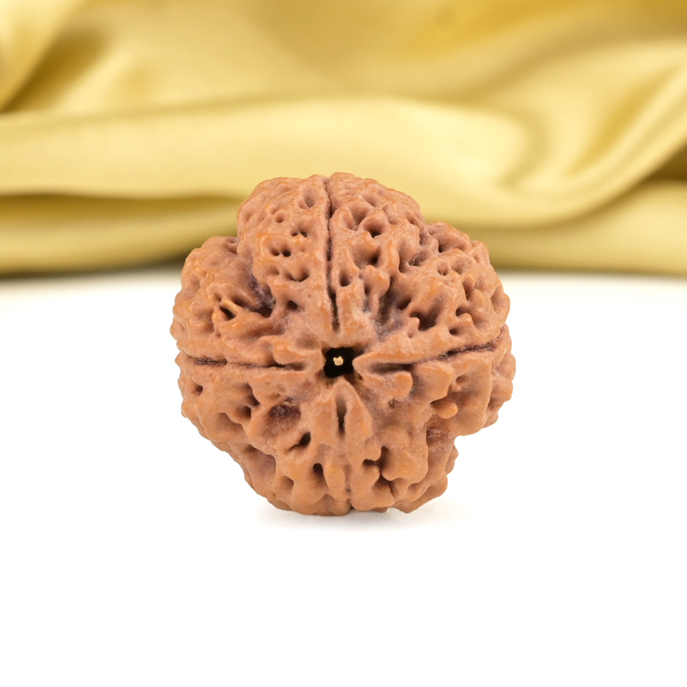 The 4 Mukhi Rudraksha embodies Brihaspati, also known as the Deva Guru or teacher of the Gods. Brihaspati is revered as the master of sacred wisdom, knowledge, hymns, and rituals. His name in Sanskrit translates to "Bhagwan of Sacred Speech." The 4 Mukhi Rudraksha helps bring out the wearer’s confidence and expressiveness, allowing them to overcome shyness and timidity. It brings melodious speech, supports creativity, clear communication, and a positive outlook, guiding the wearer towards personal growth and transformation in many areas of life.
