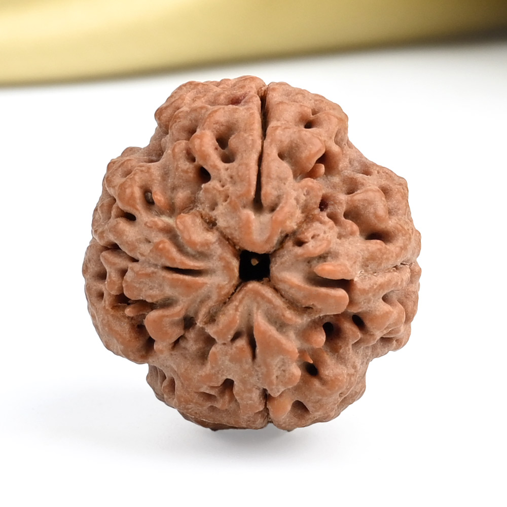 The 4 Mukhi Rudraksha embodies Brihaspati, also known as the Deva Guru or teacher of the Gods. Brihaspati is revered as the master of sacred wisdom, knowledge, hymns, and rituals. His name in Sanskrit translates to "Bhagwan of Sacred Speech." The 4 Mukhi Rudraksha helps bring out the wearer’s confidence and expressiveness, allowing them to overcome shyness and timidity. It brings melodious speech, supports creativity, clear communication, and a positive outlook, guiding the wearer towards personal growth and transformation in many areas of life.