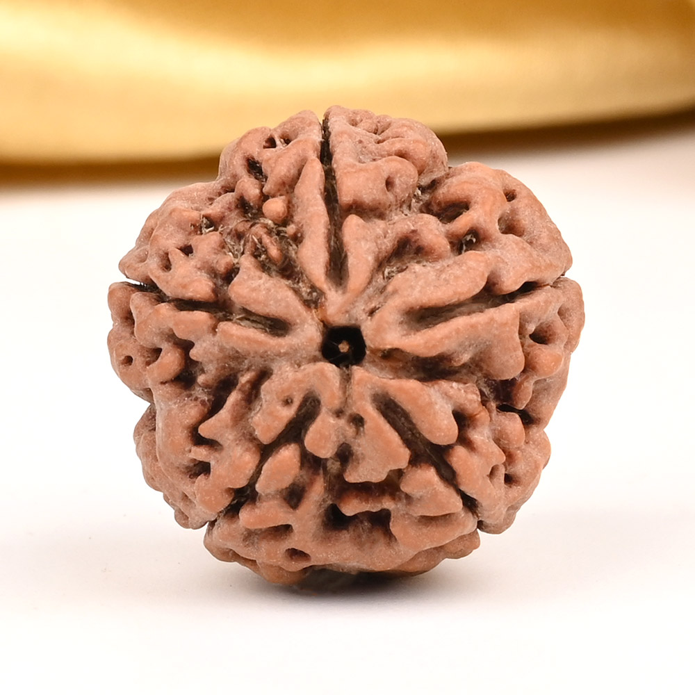 The 5 Mukhi Rudraksha represents Rudra Kalagni, symbolizing the fiery force of time and transformation that destroys ignorance and leads to spiritual awakening. It awakens the higher self, known as Upaguru, and guides individuals toward the realization of ultimate reality. Wearing this Rudraksha improves awareness, memory, understanding, and intellect, helping the wearer recognize their uniqueness and appreciate the uniqueness of others. This abundantly available Rudraksha is popularly used in malas for wearing and chanting mantras.