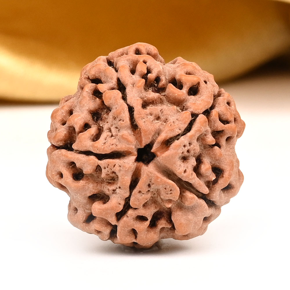 The 5 Mukhi Rudraksha represents Rudra Kalagni, symbolizing the fiery force of time and transformation that destroys ignorance and leads to spiritual awakening. It awakens the higher self, known as Upaguru, and guides individuals toward the realization of ultimate reality. Wearing this Rudraksha improves awareness, memory, understanding, and intellect, helping the wearer recognize their uniqueness and appreciate the uniqueness of others. This abundantly available Rudraksha is popularly used in malas for wearing and chanting mantras.