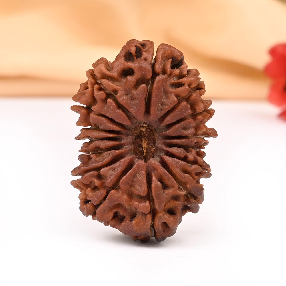 The 15 Mukhi Rudraksha embodies Pashupatinath, a five-faced form of Shiva symbolizing the divine roles of creation, preservation, destruction, illusion, and liberation. This Rudraksha opens the wearer to trust and fulfills heartfelt desires. It frees one from expectations from outside people and situations and instills the ability to forgive, forego, and detach. It heals emotional wounds, balances the heart chakra, and opens the path to higher consciousness. By awakening unconditional love and trust, it strengthens relationships. According to the Katyayani Tantra, wearing the 15 Mukhi Rudraksha helps transcend worldly attachments, enhancing focus on knowledge, self-awareness, and spiritual growth. It also supports heart health, alleviates recurring fevers, and relieves allergies.