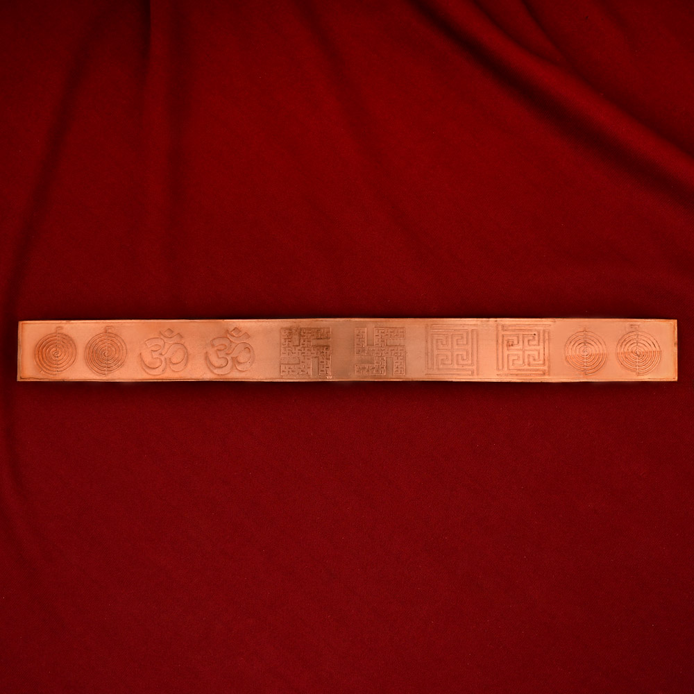 This Copper Vastu Strip is not just a simple one. It is embossed with two 'Om' and 'Swastik' symbol, which are considered are extremely auspicious Hindu symbols. On each end of the strip there are two Reiki power symbols 'Choku Rei' and two Nandavart symbol , which is a Vastu symbol. These symbols attract positive energies. These symbols on the copper strip further enhances the power of the Vastu remedy. Copper harmonizes and balances energies which makes it one of the preferred metals for Vastu remedy instruments.
