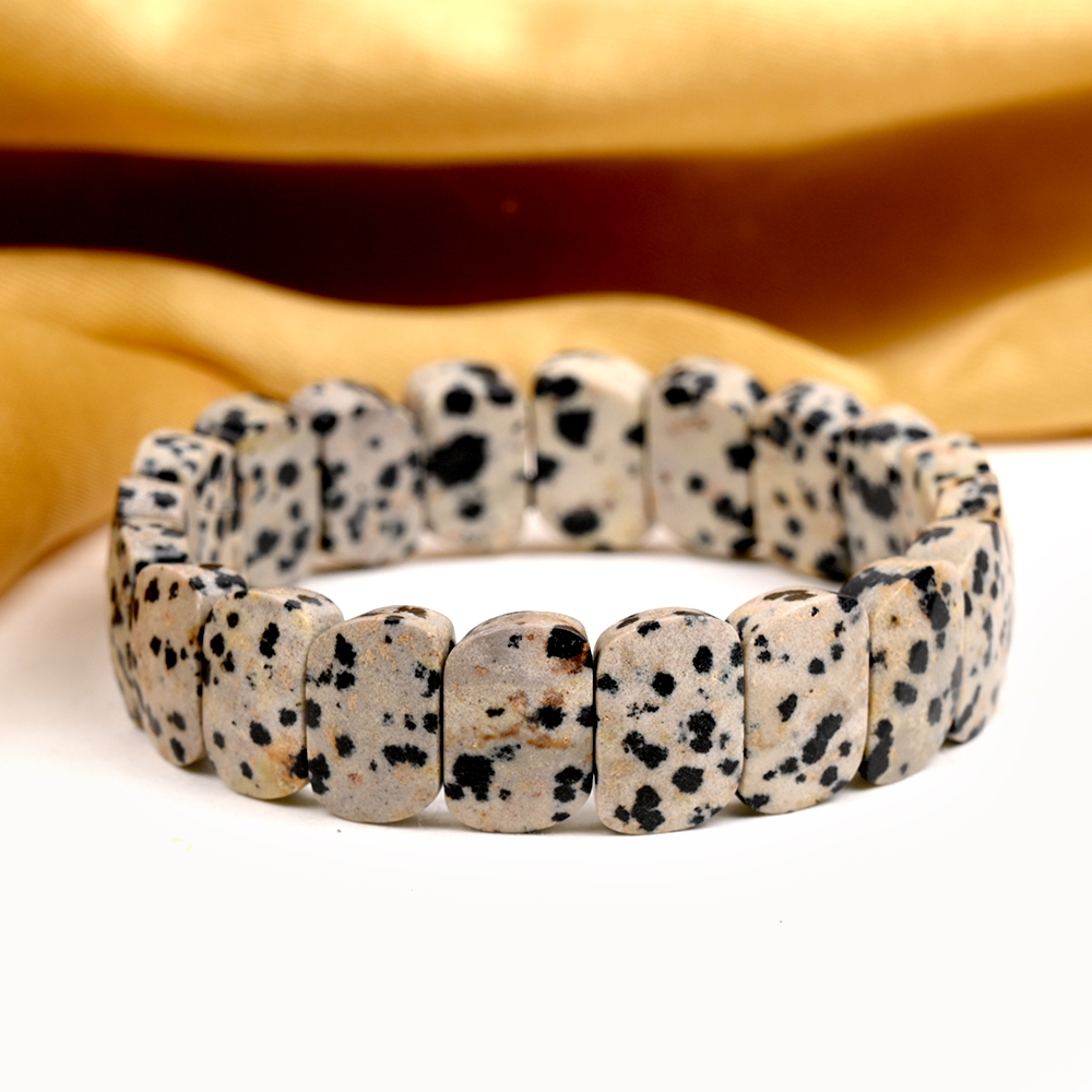 Dalmatian Jasper is associated with positivity and protection. It is believed to encourage joy, reduce negative energies, and promote emotional balance, making this bracelet both stylish and meaningful.