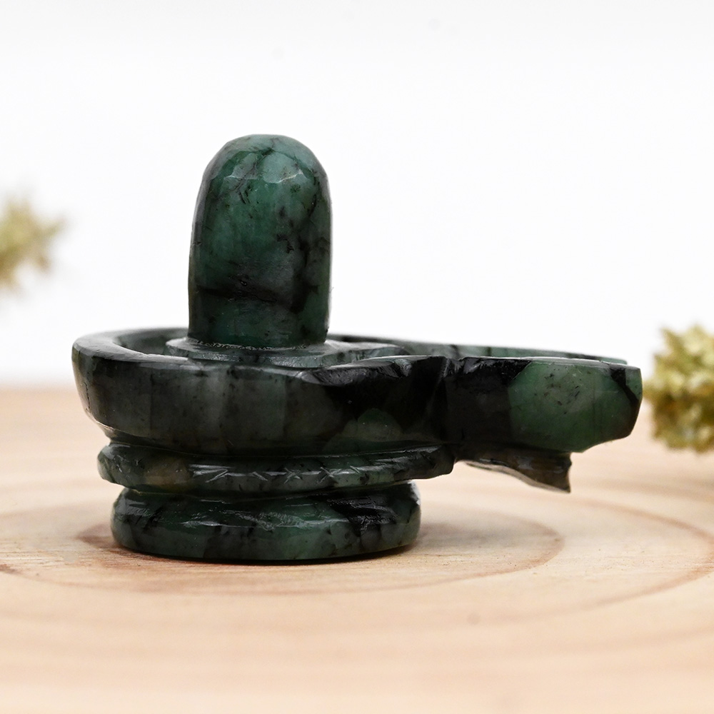 Shivalingam made with natural Emerald . Recommended for those who have adverse placement or transit of Rahu in their birth chart. Malefic Rahu increases mental tension, fears and phobias.