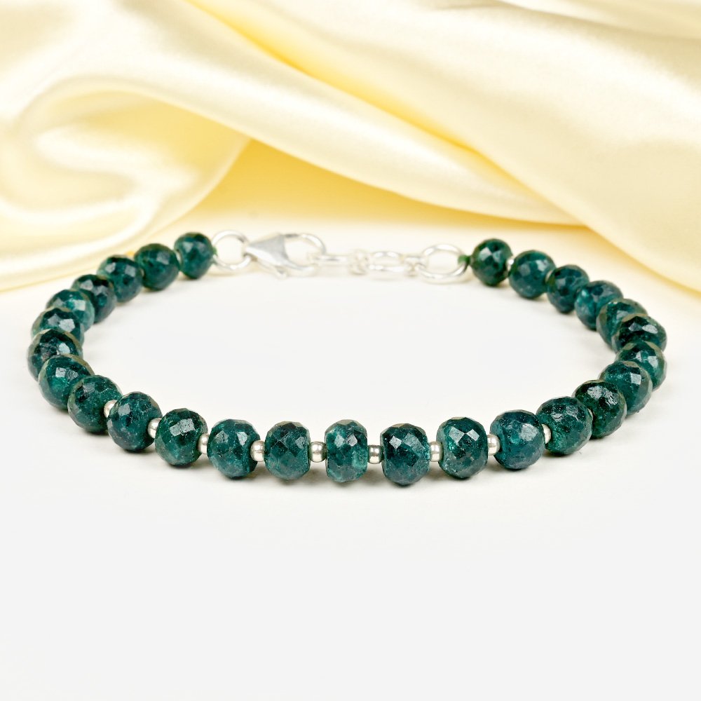 Bracelet made of faceted emerald beads separated with silver balls. Emerald is valued for attracting prosperity, fostering emotional balance, and enhancing clarity of thought, making this bracelet a perfect harmony of style and spiritual strength.