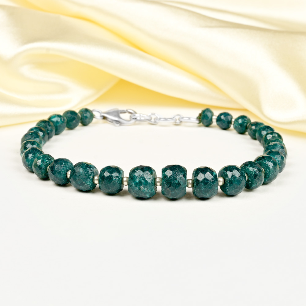 Bracelet made of faceted emerald beads separated with silver balls. Emerald is valued for attracting prosperity, fostering emotional balance, and enhancing clarity of thought, making this bracelet a perfect harmony of style and spiritual strength.