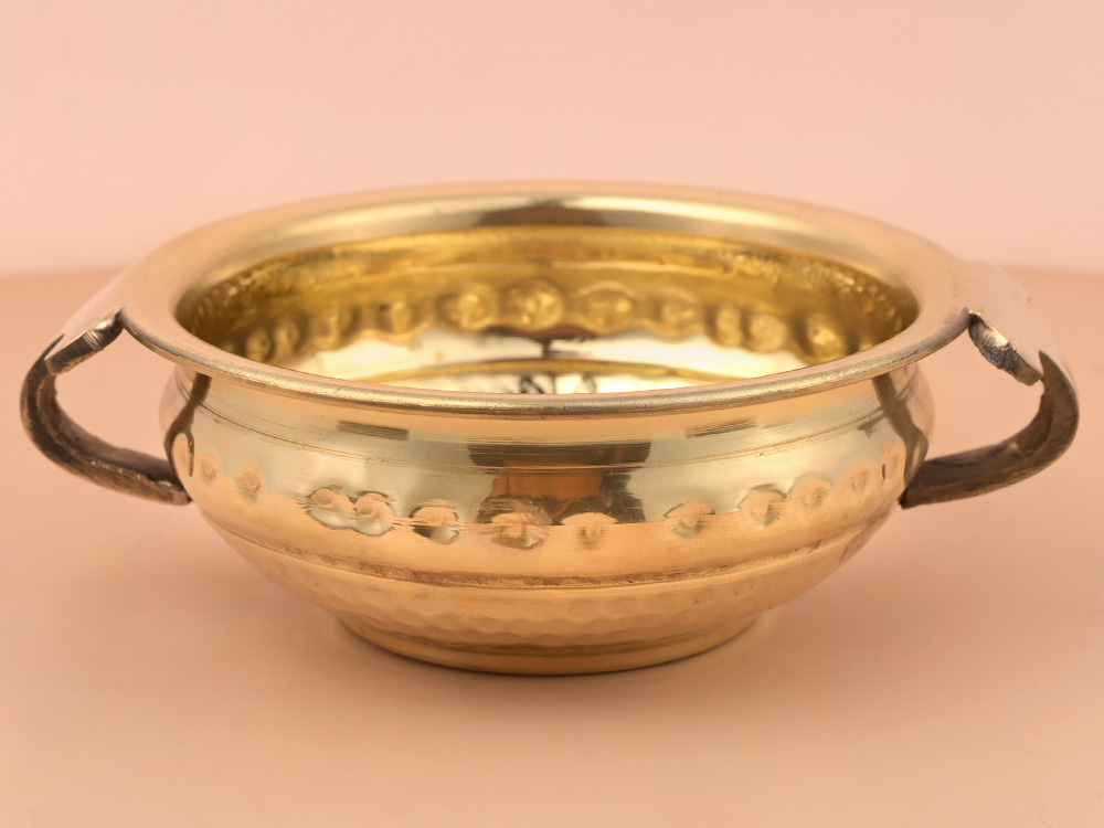 A lovely, shining Flower Container carved from Brass, is perfect for keeping fresh flowers, leaves for offering while performing Puja rituals or for simply keeping it your Puja Mandir/room filled with beautiful Flowers as an offering to the Divine Deities. The container is deep and can hold enough flowers for your Puja, Pushpanjali and can be also used for keeping flowers for decoration purpose, like, grihapravesh, wedding ceremony etc. Traditionally, offerings to Gods are decorated and displayed beautifully and neatly, as it shows our love and respect for Divine.