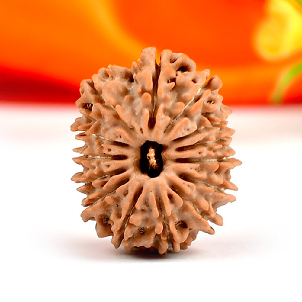 The 14 Mukhi Rudraksha is known as Deva Mani, the most precious divine gem. It embodies the mighty Hanuman and imparts the wearer with unwavering determination, divine insight, and the bravery to conquer any challenge. The wearer traverses the path of righteousness, achieving excellence, victory, and success. Hanuman, also known as Rudravtar, is a devoted disciple of Bhagwan Rama and imbues worshippers with His qualities of sincere devotion and unwavering loyalty towards dharma. Those attuned with this Rudraksha, and thus Lord Hanuman, are guided towards perfect mastery of the senses and virtues such as endurance, fearlessness, and courage. Wearing this Rudraksha helps alleviate uncontrolled anger and fear, bone pains, and blood-related disorders.