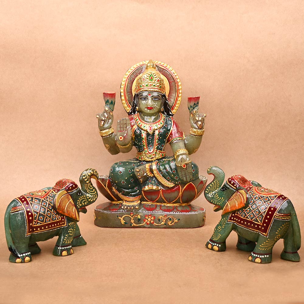 Gajalaxmi is among the Ashta Lakshmi forms of Goddess Mahalaxmi, the Goddess of Wealth. She is also known as the Goddess of fortune, power, luxury, beauty, fertility, auspiciousness, material fulfilment and contentment. Green Aventurine provides strength, confidence, courage and happiness. It renews one's optimism for life and pushes to take actions to fulfil one’s desires. The gemstone facilitates to get out of your comfort zone and take up new opportunities.