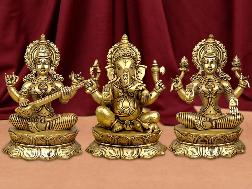 This ensemble is a spiritual and aesthetic investment. The shared energy of Ganesh, Laxmi, and Saraswati ensures a perpetual invitation for prosperity, wisdom, and inspiration, transforming ordinary rooms into sanctuaries of harmony and success. Their presence nurtures ambition, fosters a balanced mind, and protects every endeavor, making the set indispensable for families, professionals, and devotees seeking to elevate their environment to a standard of spiritual luxury.