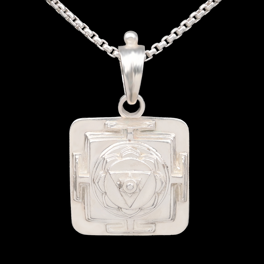 The beautifully crafted locket has Ganesh Yantra perfectly etched in 3 dimension form on pure silver. With detailed craftsmanship and glossy finish, the Yantra is sure to resonate divinity every day.