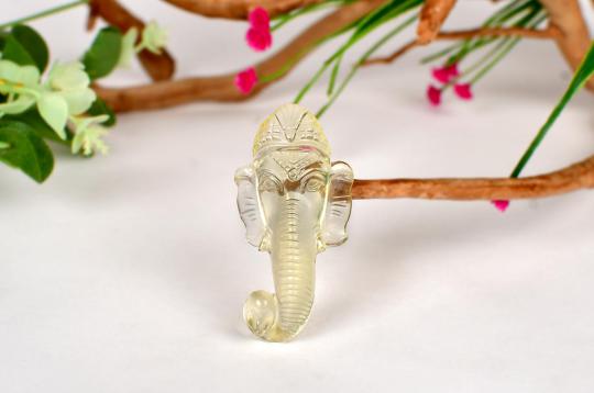 Charmingly crafted Lord Ganesha face made in natural lemon topaz looks very blissful with clear radiance and finesse craftsmanship. The intricate carving on the crown, trunk and forehead add to the beauty of the divine sculpture. Lord Ganesha is worshipped and offered prayers before commencement of any new work as He removes any obstacles and bestows wisdom, positivity and intellect to succeed. Meditating over this divine face of Ganesha would usher blessings of abundance and positivity and enhance awareness, focus and spiritual wisdom and give you a clear and bright outlook to make your future the way you want it to be.