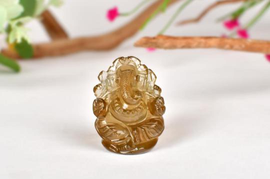 Beautifully carved in a seated position in natural Lemon Topaz, this magnificent idol of Lord Ganesha is sure to increase the aesthetic value of your house while, inviting positivity, peace and happiness. The meticulously carved ornaments and the structure in whole is of brilliant craftsmanship. Before beginning or starting any new work we always offer prayers to Lord Ganesha as He bestows happiness, positivity and wards off negativity from our lives. Meditating over this divine idol will enhance your focus; give you a clear and bright outlook to make your future the way you want it to be.