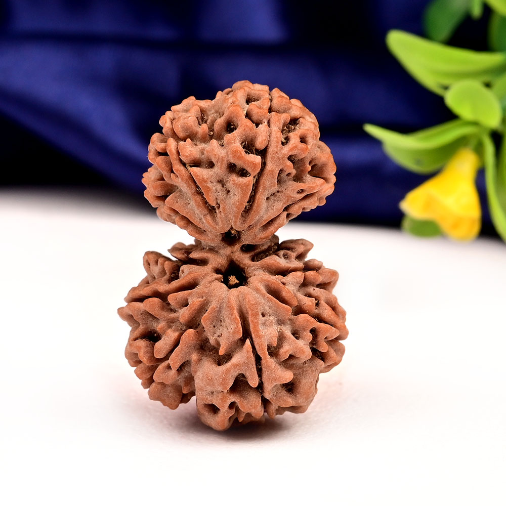 The Gauri Shankar bead is two naturally joined beads of same Mukhi which represent the unified form of Lord Shiva and Goddess Shakti/Gauri, representing the union of Divine masculine and feminine. The superior quality Gauri Shankar 11 Mukhi is best worn as a Locket for optimum benefits. The ruling Deity is Dakshnimurthy, which is a form of Lord Shiva as the Universal Guru (teacher). The Gauri Shankar 11 Mukhi helps to connect with Guru, one's higher self, provides the wisdom, knowledge and intellect to face the truth about one's own self. It is an excellent bead for improving self expression, communication, creativity and brings vital lessons from Guru Brihaspati/ planet Jupiter, the Guru(teacher) of Gods. The 11 Mukhi enriches the mind with true wisdom, knowledge and intellect, spiritual upliftment, will power, prosperity, helps to recognize one's limitless self and blesses with success.