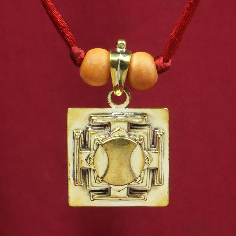 This powerful pendant features the sacred Hanuman 3D Yantra crafted in radiant brass, strung on a red thread with sandalwood-colored beads and a polished gold-toned bail. The deeply engraved 3D design radiates strength, clarity, and divine protection.