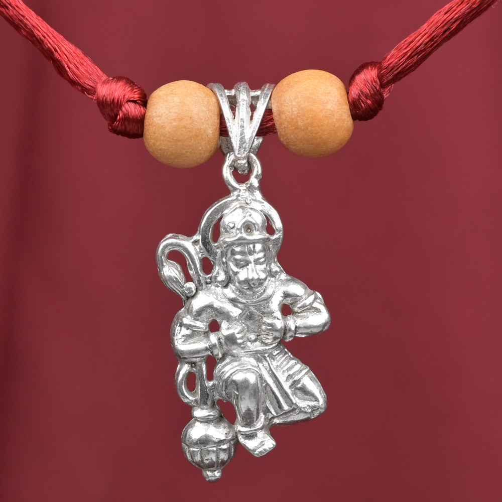 This pure silver pendant features Hanuman tearing his chest to show the divine image of Ram and Sita. The finesse finish and brilliant shine adds to the charm of this adorable piece of jewel. Attached to a broad teardrop bail, this intricately designed pendant can be worn by anyone.