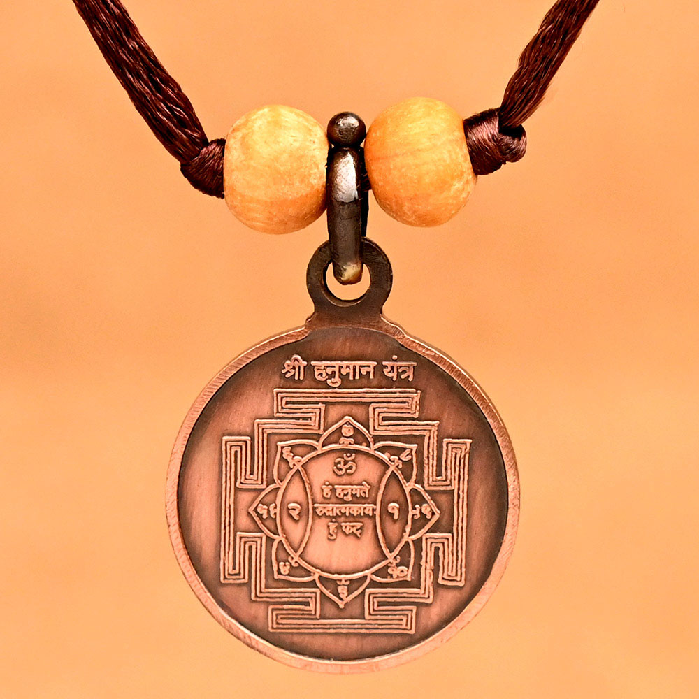 This magnificent locket with Hanuman Yantra on one side and Lord Hanuman image on other side is crafted in copper with long lasting antique finish. Lord Hanuman is worshipped for power and protection, Hanuman Yantra helps one become more confident and attain success in life.