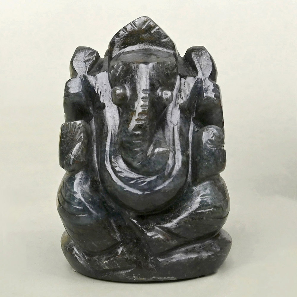 The exquisite Lord Ganesha idol in seated position is carved from natural Iolite stone. Lord Ganesha is remover of obstacles; He is the God of wisdom and knowledge and is worshipped before undertaking of any endeavor. Both Lord Ganesha and the Iolite propel individuals on the path of success. The amazing Lord Ganesha idol in Iolite provides dual benefits of blessing of Lord Ganesha and benefits of the Iolite gemstone which are enhancement in energy levels and inducement of responsibility, motivation and art of being organized.