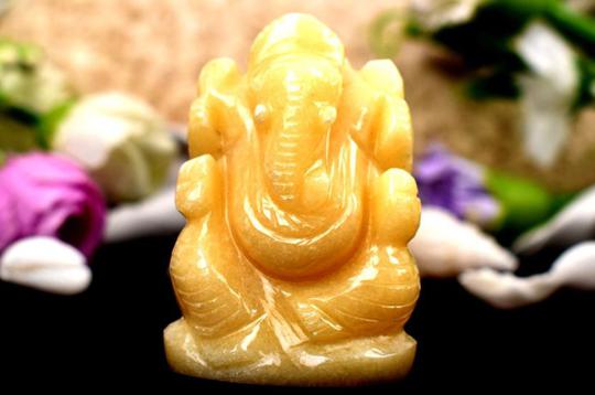 Beautifully sculpted in natural single piece of Ivory Yellow Jade gemstone, this idol of Lord Ganesh looks simple yet elegant because of its design and soothing colour of Ivory Yellow Jade. This idol features Lord Ganesh in a seated pose, holding weapons in His two upper hands while, His right hand is carved in a blessing pose and a Modak is carved on top of His left palm. Lord Ganesh has many names; one of the most popular names of Lord Ganesh is Sukhkarta meaning (One who brings happiness and Joy). Lord Ganesh blesses His worshipper’s with enhanced wisdom and happiness. He also protects and wards off negativity from the dwelling and the people who dwell in that house. Yellow Jade is placed to attract money and also for protection against accidents / misfortunes. Place the Idol in your puja altar, at your office or work station and bring happiness, wealth, peace and success in your life.