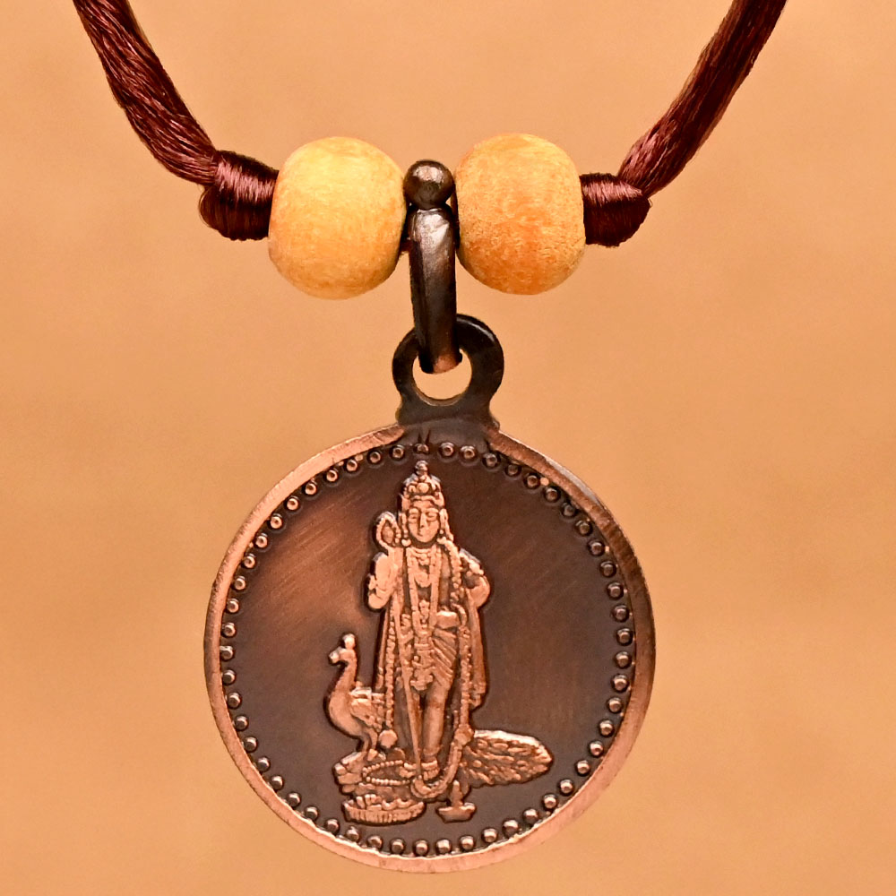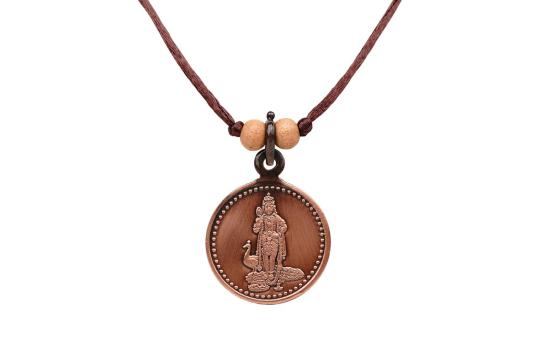 This divine looking copper locket with antique finish has perfectly etched Kartikeya Yantra on one side and image of Lord Kartikeya on other side. Lord Kartikeya also known as Skanda, Murugan and Subramanium is the son of Lord Shiva and Goddess Parvati. He is the God of war and victory and leader of army of Devtas(Gods) and personifies bravery, confidence, quick action and intelligence. The Yantra is especially recommended for those who want wish to enhance their leadership skills.