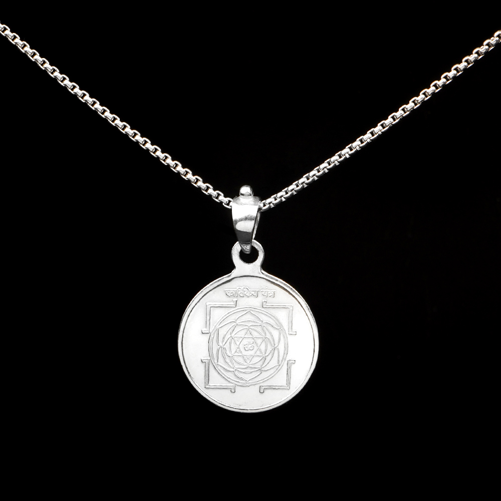 This divine looking silver locket with antique finish has perfectly etched Kartikeya Yantra on one side and image of Lord Kartikeya on other side. Lord Kartikeya also known as Skanda, Murugan and Subramanium is the son of Lord Shiva and Goddess Parvati. He is the God of war and victory and leader of army of Devtas(Gods) and personifies bravery, confidence, quick action and intelligence. The Yantra is especially recommended for those who want wish to enhance their leadership skills.