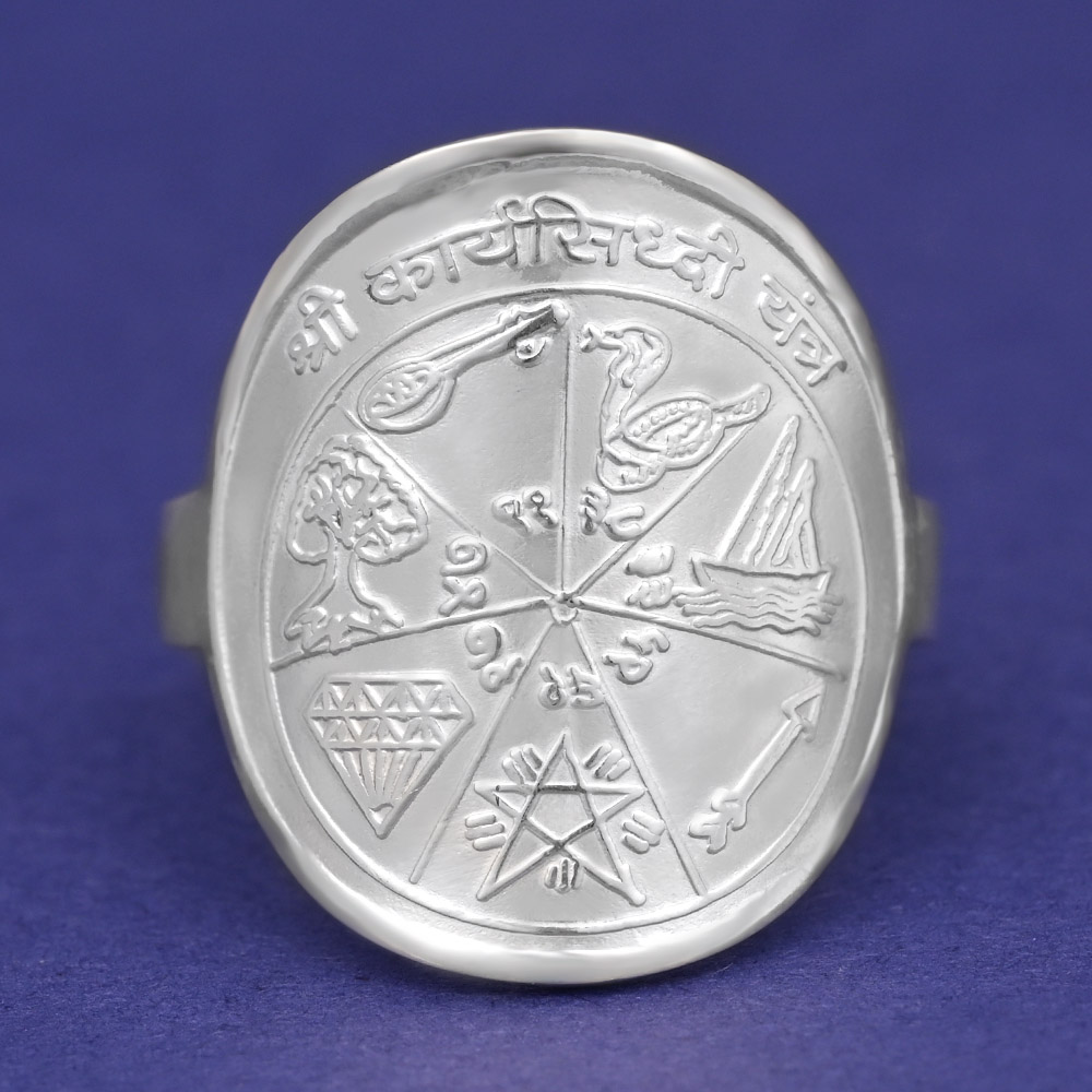 This ring made in pure Silver with Shree Karya siddhi Yantra etched on it, provides healing benefits of copper and blessings of Yantra. This blessed and energised Yantra ring helps remove any obstacles, fulfil all desires and bestows success. With adjustable feature to fit all finger sizes, it also provides healing benefits of copper. It helps prevents microbial infection and lethargy and improves immunity of the wearer.