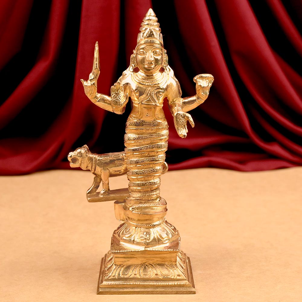This idol artistically crafted in heavy bronze features Ketu, Who is one of the Navagrahas. The idol portrays Ketu as a half body without head and a fish below the torso. He is decked with ornaments and holds a flag, sword, shield and rope in His hands. Ketu is a shadow planet and signifies the south node of the Moon. He represents detachment, spiritual knowledge, righteousness and supernatural influences. Worshipping Ketu provides from foes and all kind of negativity and pacifies malefic effects of the planet. It bestows spiritual growth, prosperity, materialistic comforts, wealth and success in life and removes doubt and poor discrimination. Place the idol in your puja altar, living area or on study or work desk for blessings and protection.