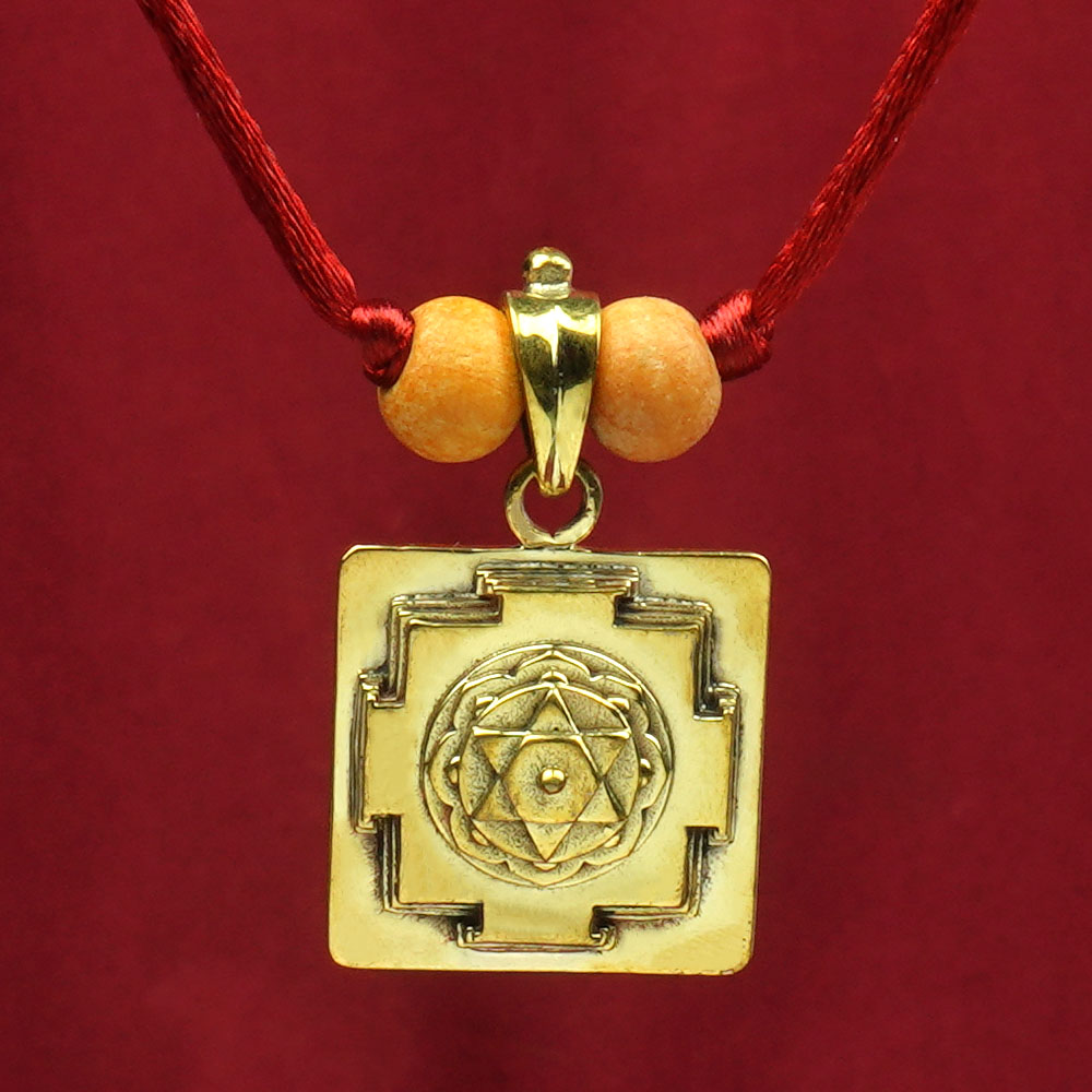 This divine pendant features the intricately embossed Krishna 3D Yantra crafted in radiant brass, suspended on a vibrant red thread flanked by soft orange beads and a traditional gold-toned bail. Designed in a 3D form and crafted inhouse by Rudra Centre artisans, this yantra radiates spiritual symmetry and sacred geometry that enhances its vibrational power.