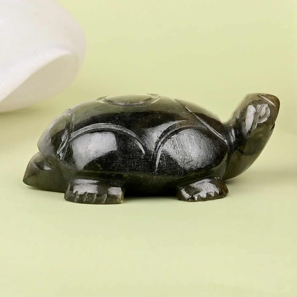 For: Goodluck, harmony and longevity. To be placed on office table/ work desk / living room. This Kurma is carved in pure Labradorite.