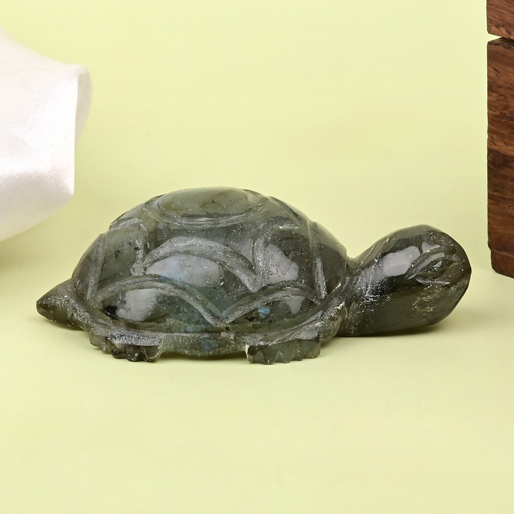 For: Goodluck, harmony and longevity. To be placed on office table/ work desk / living room. This Kurma is carved in pure Labradorite.