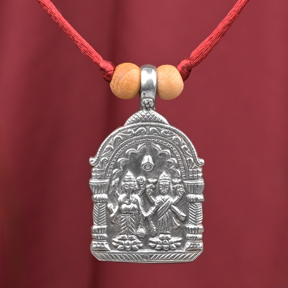 Lakshmi Ganesh exquisitely portrayed in heavy silver locket.