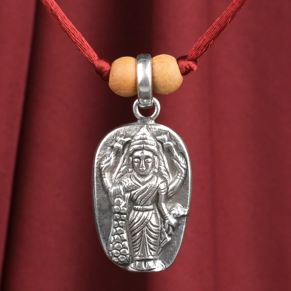 A beautiful handcrafted heavy silver locket with antique look . The diety image is embossed in the front in fine detail.